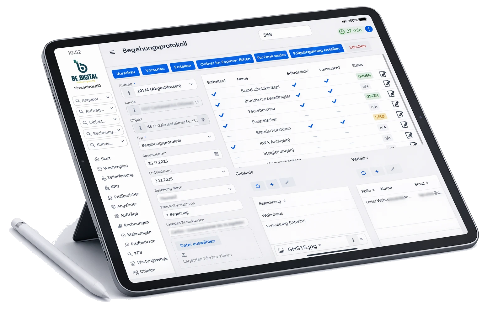 Vom ersten Angebot zurr ersten Begehung, über Prüfungen, Wartungsverträge und Zeiterfassung