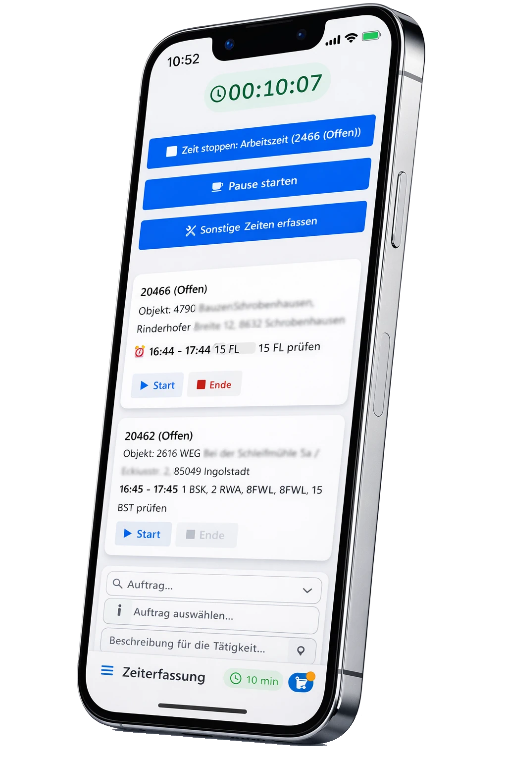 Aufträge, Prüfungen, Zeiten, Berichte, Rechnungen und Kunden – alles in einem System.